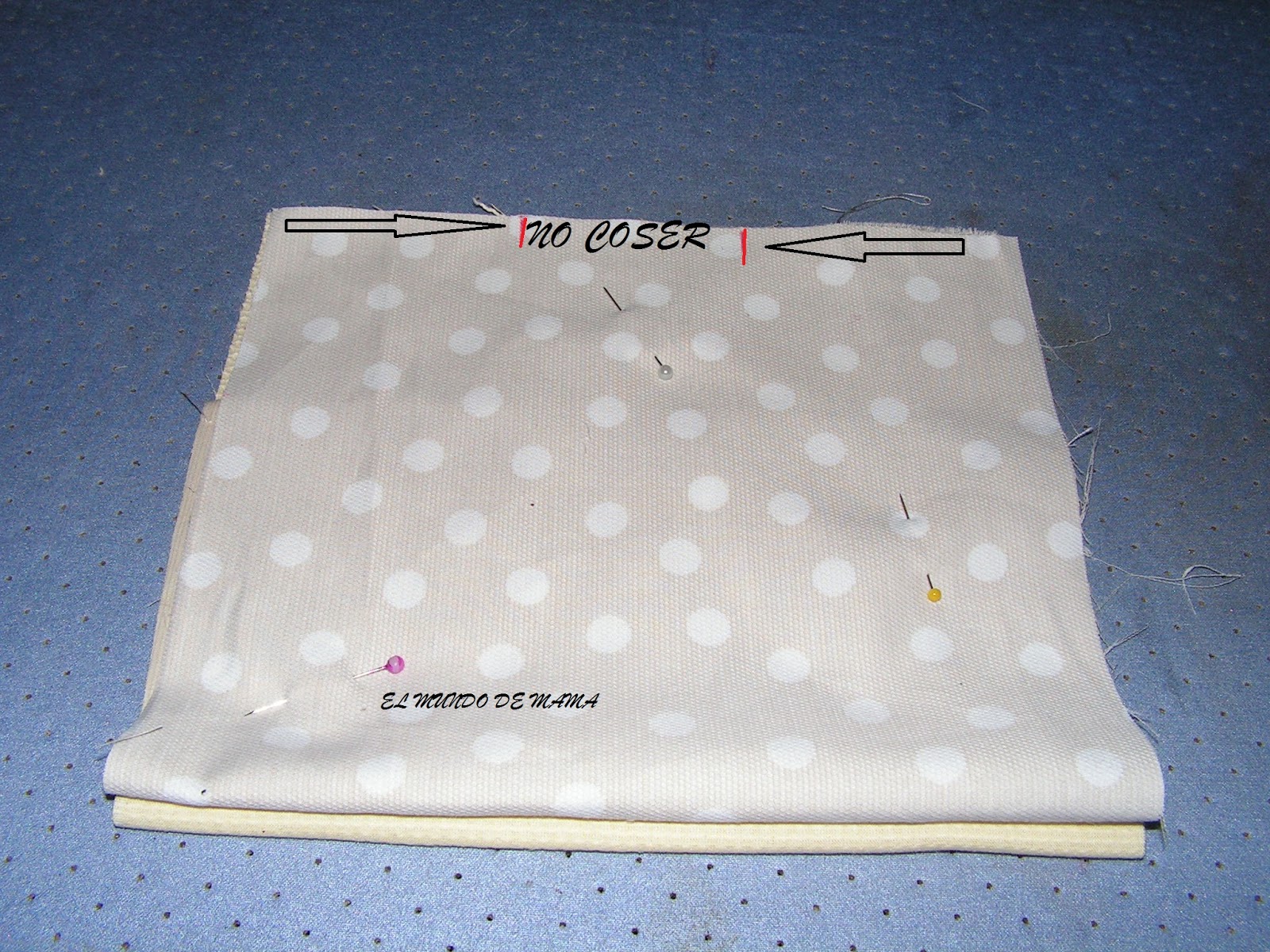 Cosemos los 2 laterales y la parte de arriba dejando por donde marcamos sin coser.