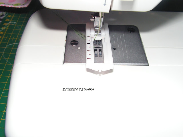 Despues ponemos la maquina en la marca 3º esta foto no la tengo, y cosemos, (vereis que cose hacia detras) hasta la marca que teniamos hecha, cuando llegemos, volvemos a poner la maquina en la marca de 2º--4º y volvemos a dar unas 5 puntadas.