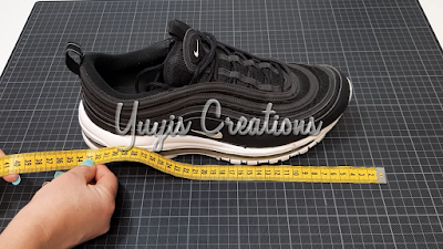 La medida para el hule o la tela que vayas a utilizar va a depender del tamaño del zapato. Para sacar estas medidas vamos primero a medir primero la longitud del zapato y a esa medida le sumamos 10 cm.