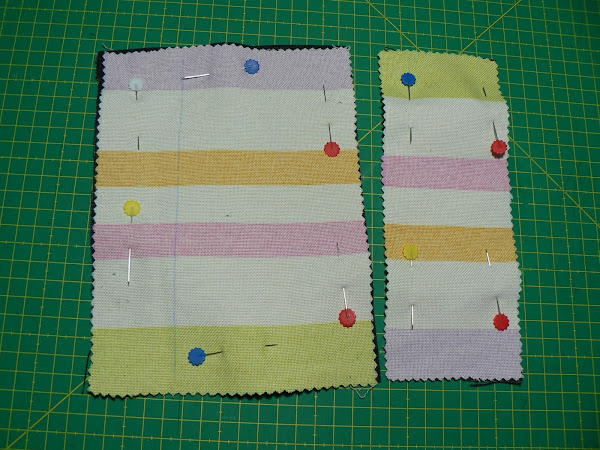 Encaramos los derechos de las piezas y sujetamos con alfileres. Vamos a coser por todo el contorno, dejando una abertura de unos cinco centímetros en el centro de la base del bolsillo.