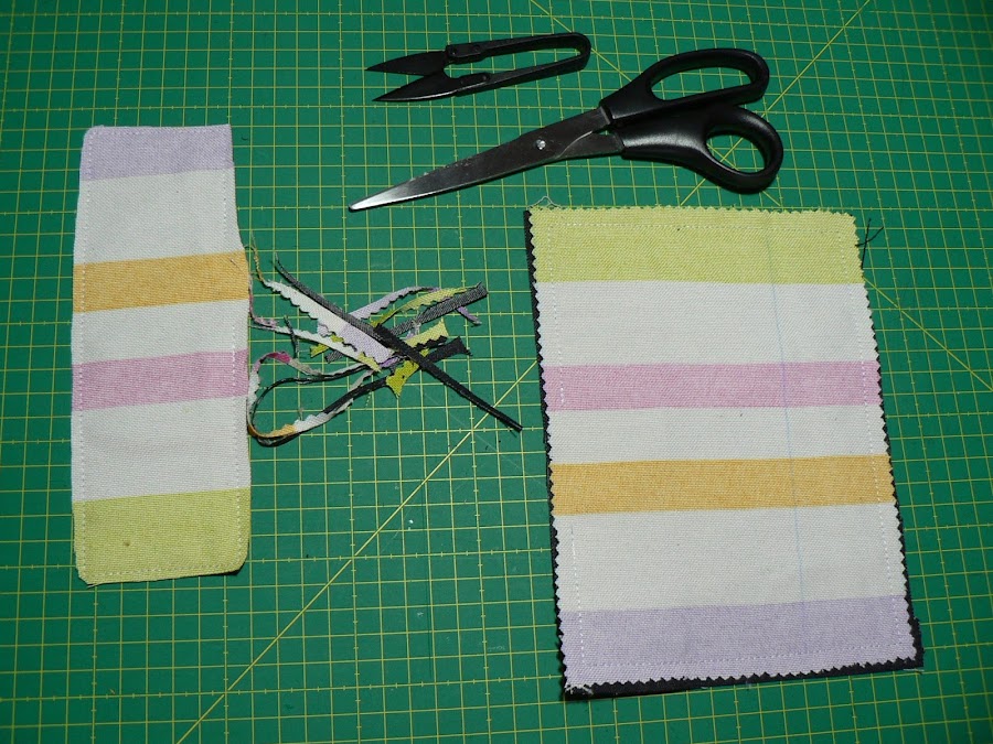 Recortamos los excesos del margen de costura sin cortar demasiado en la zona de la abertura.