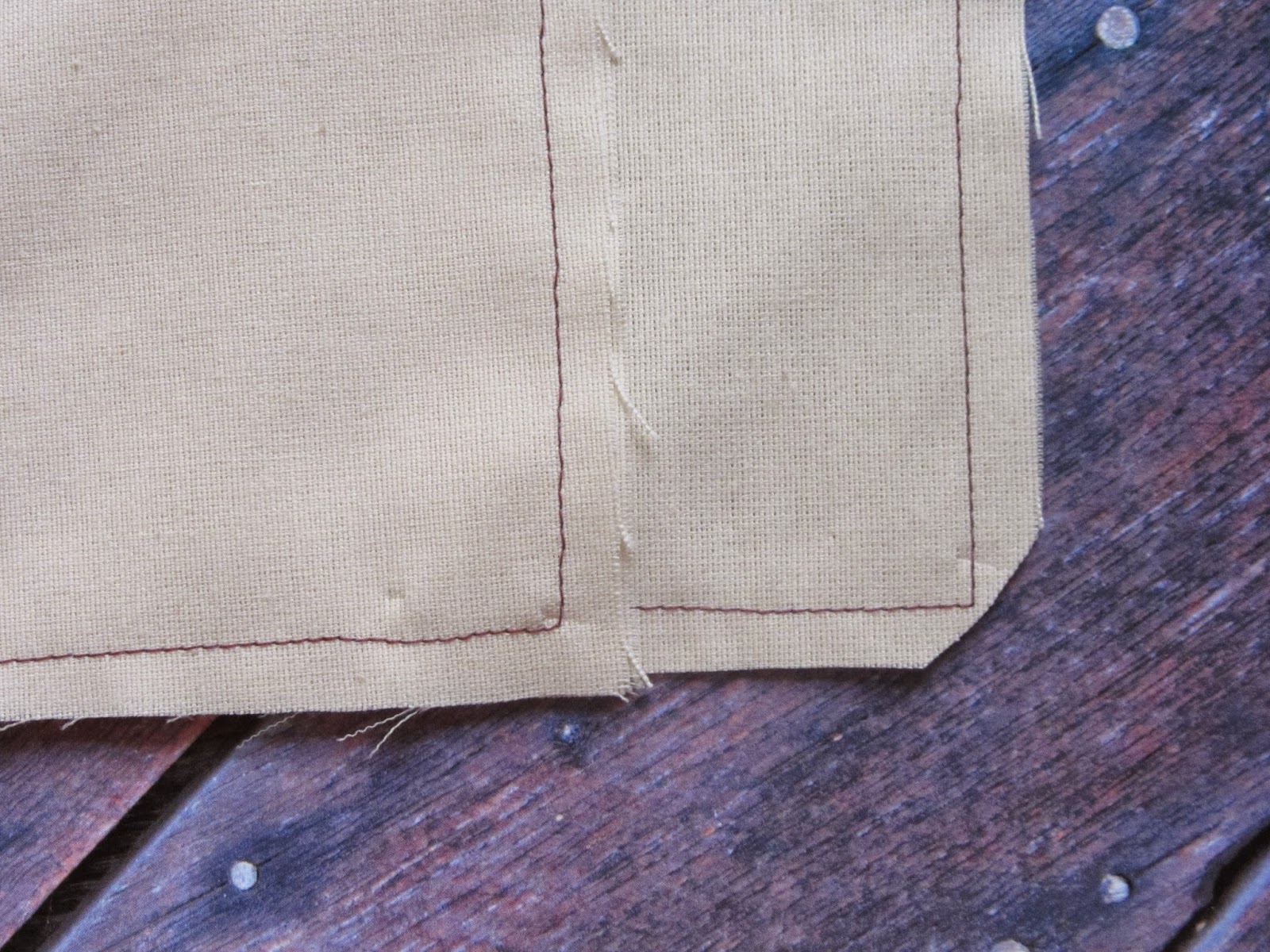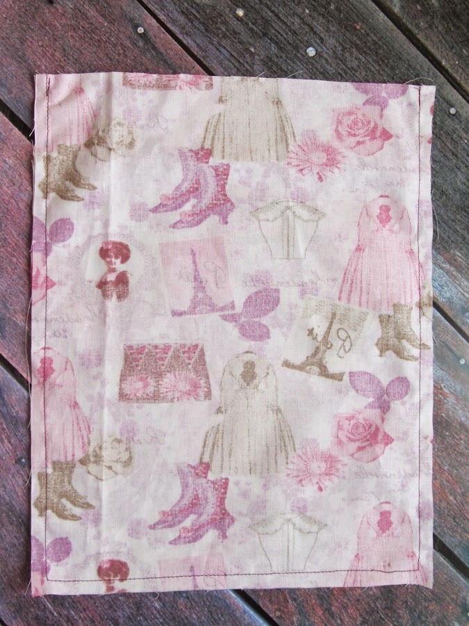 Cogemos los dos rectángulos de tela, y con los derechos enfrentados, hilvanamos tres partes, o ponemos alfileres, a gusto de cada cual, y pasamos por la máquina a 1 cm del borde.