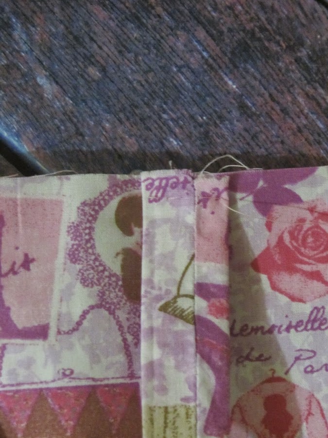 En los laterales del exterior, del derecho, ponemos las tiras que nos van a servir de asa hilvanadas, a la misma medida de la esquina.