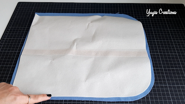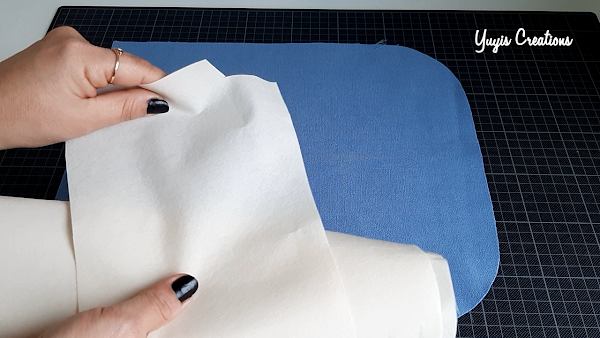 El estabilizador que usé lo corté 1 cm más pequeño que la medida de la solapa, esto para que al momento de voltear la tela no se haga un bulto feo en los bordes, ya que ese material es bastante grueso y un poco difícil de manejar.