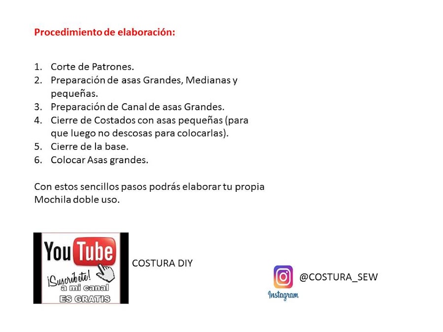 Suscribete a este canal, ¡¡¡ es gratis !!! activa en la Campanita y recibirás notificaciones cada vez que suba a YouTube todo lo relacionado a la costura, estoy armando un montón de ideas para que elabores tu ropa, morral y patrones de manera sencilla en otros.