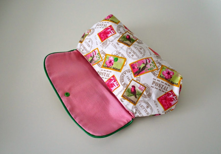 El clutch va forrado, tiene unas pinzas en la parte inferior para dar volumen y el cierre es con un snap o corchete. Por supuesto, podéis poner el cierre que mejor os venga o dejarlo sin cerrar. Todas las opciones son igual de buenas.