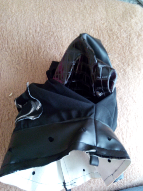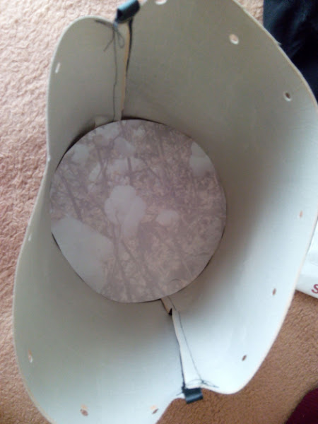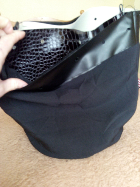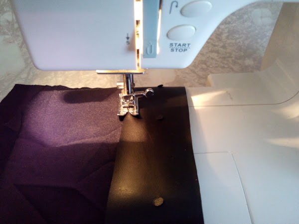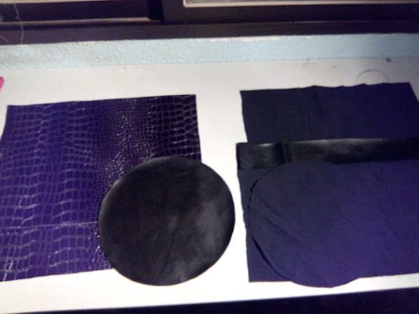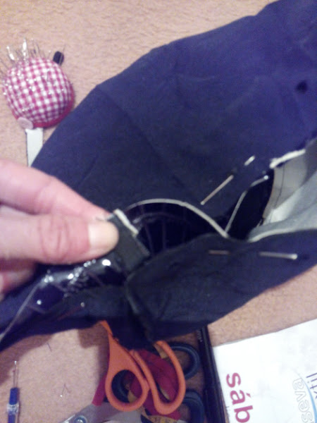 Una vez unido los laterales vamos a pegarle el circulo, En todo momento nos ayudaremos con alfileres en el forro pero no en el tejido ya que se quedan los agujeros marcados en la polipiel.
