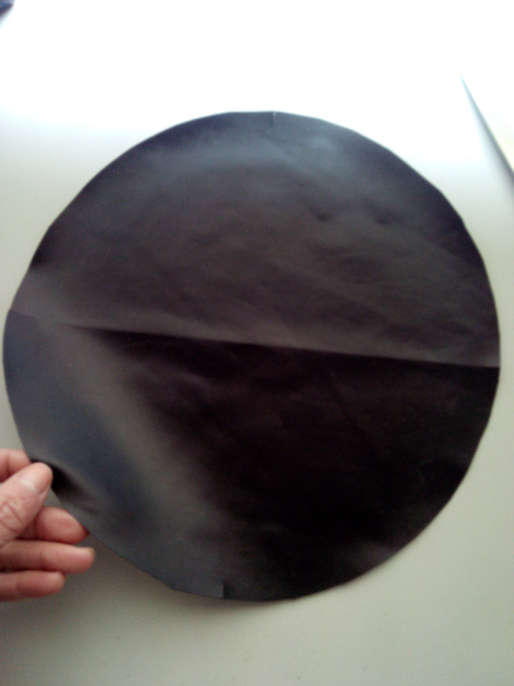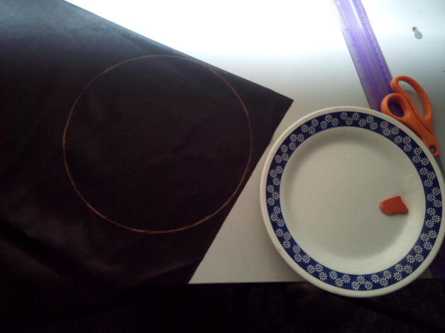 Para que nos cueste menos coserlo, doblamos por la mitad el circulo y le hacemos un piquete y volvemos a doblarlo obteniendo 4 piquetes que coincidirán con el rectángulo que vamos hacer.