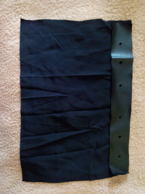 Comenzamos pegandole en la parte superior el trozo de polipiel, que nos servirá para reforzar los agujeros y que se vea mas profesional nuestro bolso.
