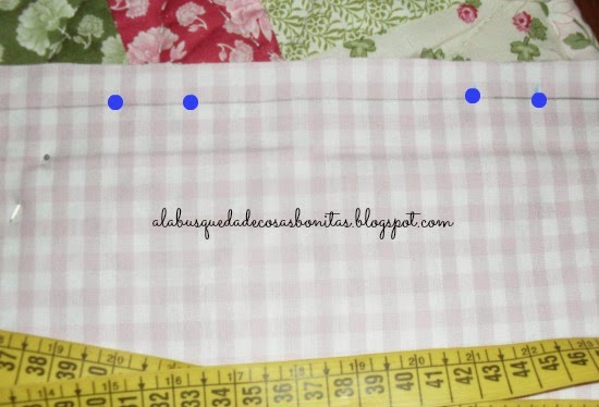 Hacemos una marca a 4 centímetros de cada esquina en los lados más cortos del bolso (en los laterales, vamos).