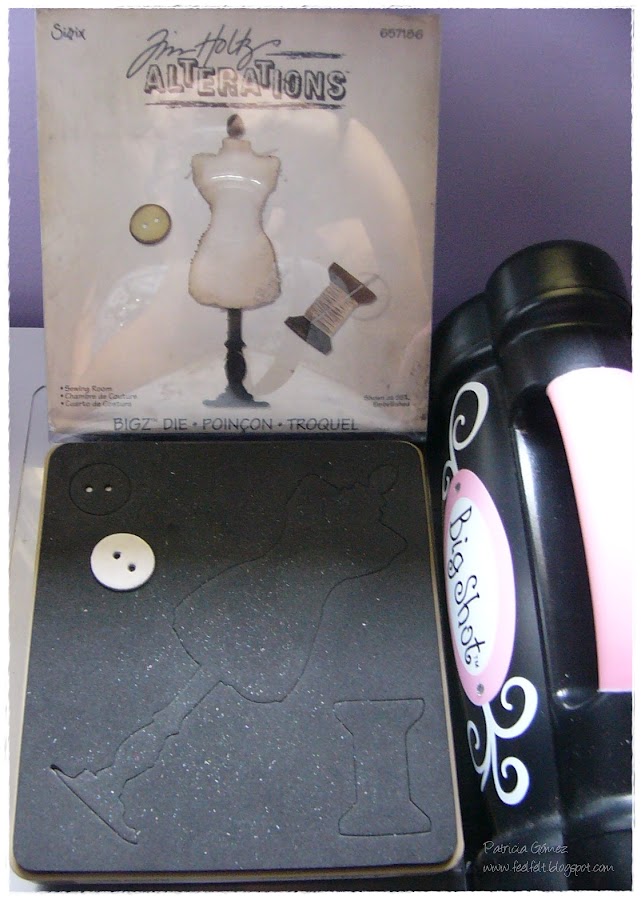 1. Corto con la big shot el troquel de botón incluido en el set "Sewing Room" de Tim Holtz.