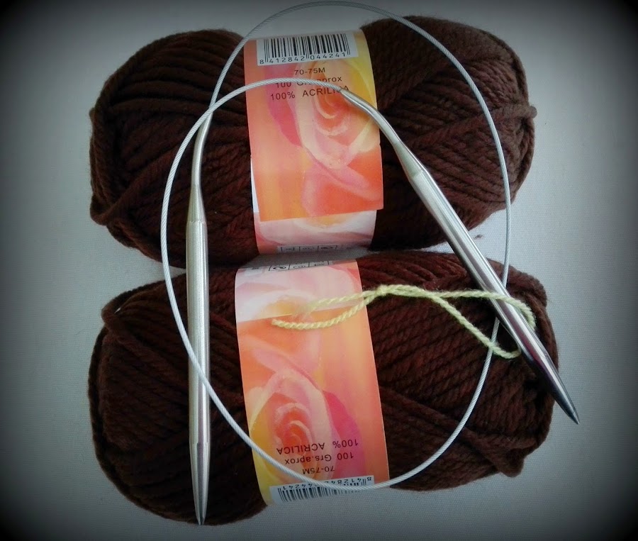 2 ovillos de lana en color marrón oscuro para tejer con agujas nº 8/9