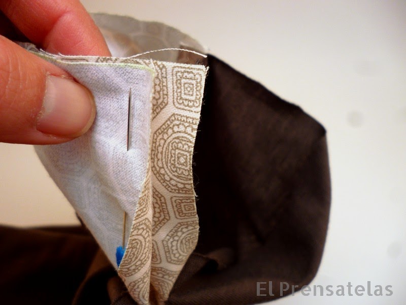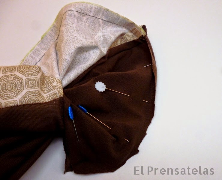 5. Emparejando los bordes, fijar con alfileres y coser los bordes cortos, a mi me gusta coserla desde la costura central a uno de los extremos y después la otra mitad, es como más sencillo me resulta, pero también podemos hacerlo de una vez: