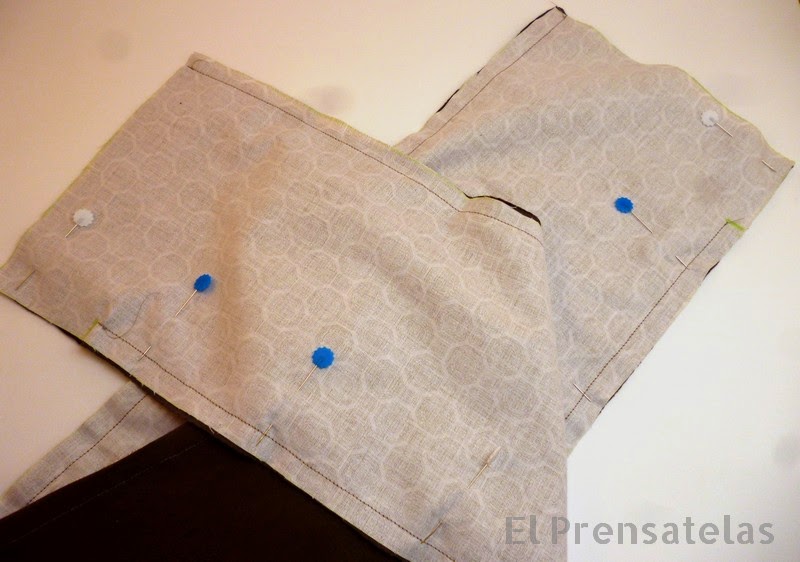 2. Fijamos de la misma manera los otros bordes largos pero esta vez a la hora de coser dejamos una abertura de unos 6 cm. en cada unos de los extremos: