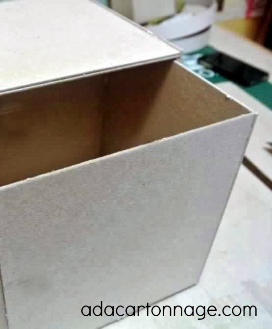 5. Forramos toda la estructura de cartón con un bonito papel y ya tenemos una caja-cubo super práctica.