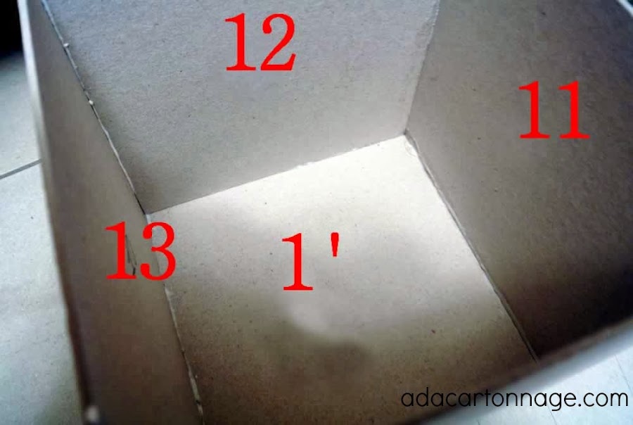 4. Formamos el cajón (cartones 1", 10,11, 12 y 13), siendo la base de nuestro cajón el nº 1".