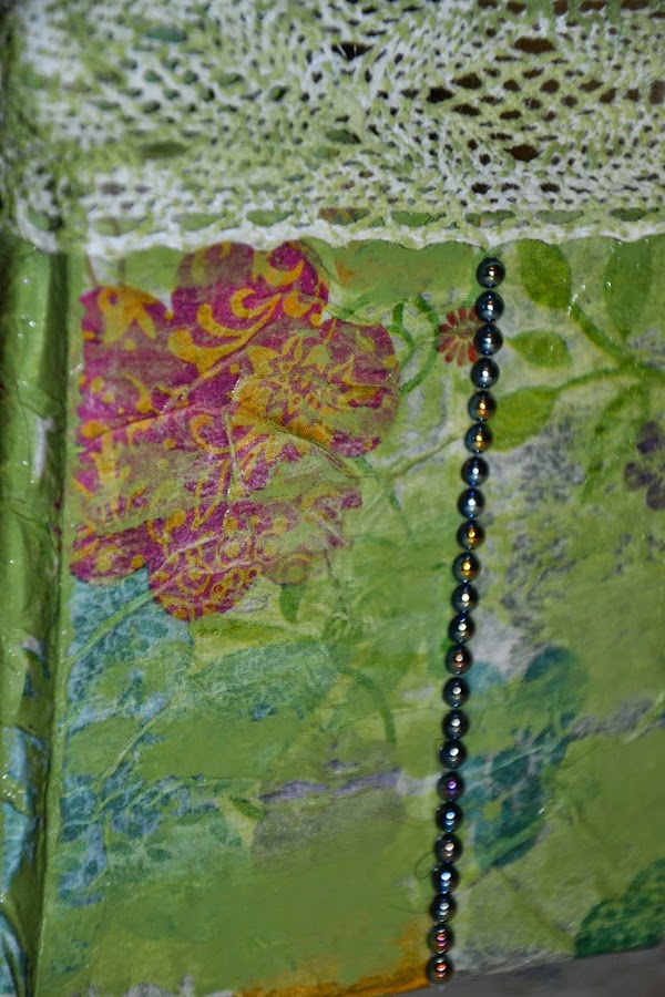 - El siguiente paso será el de pintar las servilletas que hemos pegado en la caja con la pintura elegida, rebajada en agua para que la servilleta quede difuminada y dejaremos que seque bien.