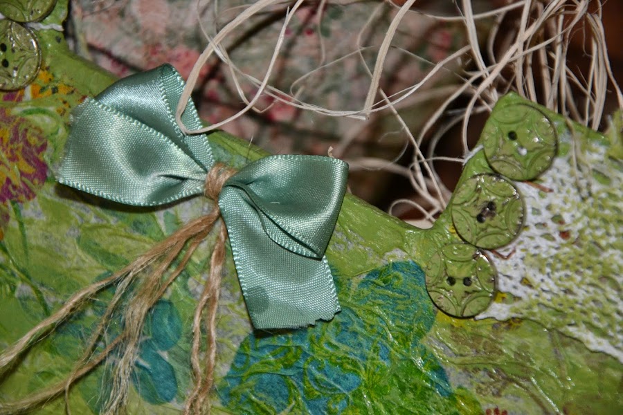 - Entre los botones colocaremos los lazos que hemos hecho anteriormente, los pegamos.
