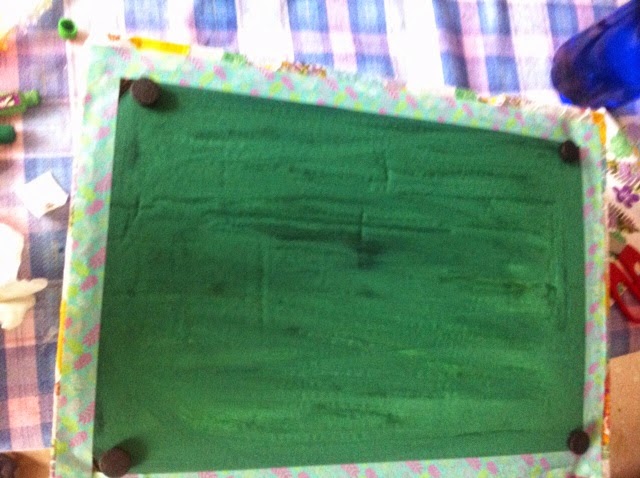 - Empezamos eligiendo el color base que predominará en nuestra caja, en este caso el que yo he escogido ha sido un verde suave, teniendo claro el color podemos pasar a pintar la caja por dentro y por la parte de abajo, dejamos secar.