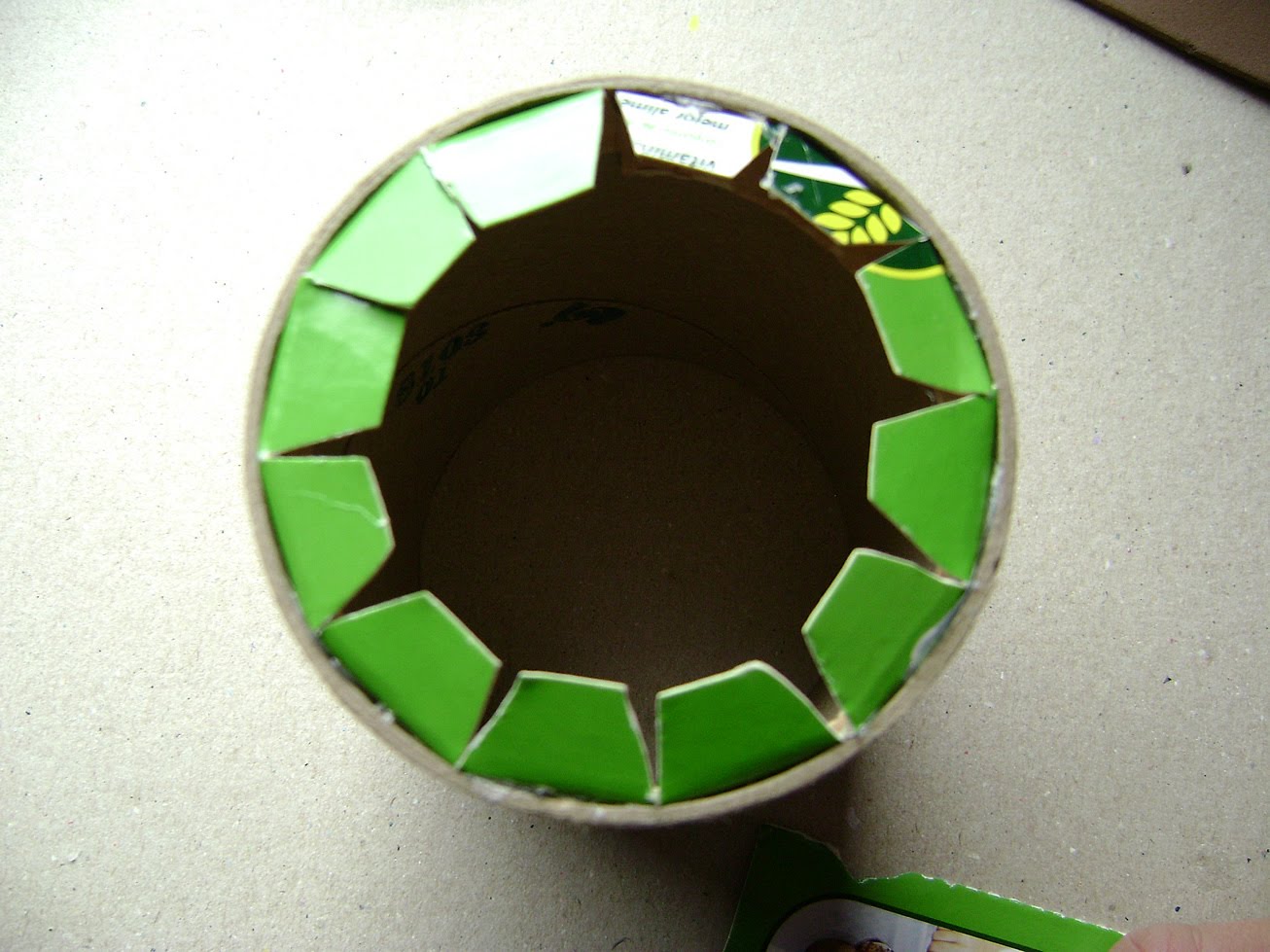 Pegar al tubo por dentro la parte lisa, dejando las pestañas por fuera.