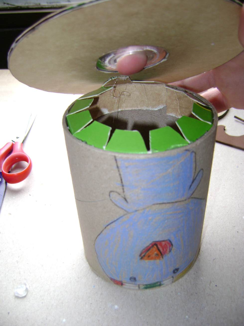 Luego se pega a uno de los cds. Esta va a ser la tapa del carrete.