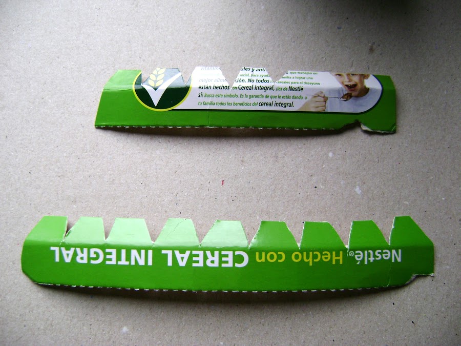 Se corta un tira de cartón y se le hacen unas pestañas. En esta foto hay dos tiras porque la primera quedó corta.