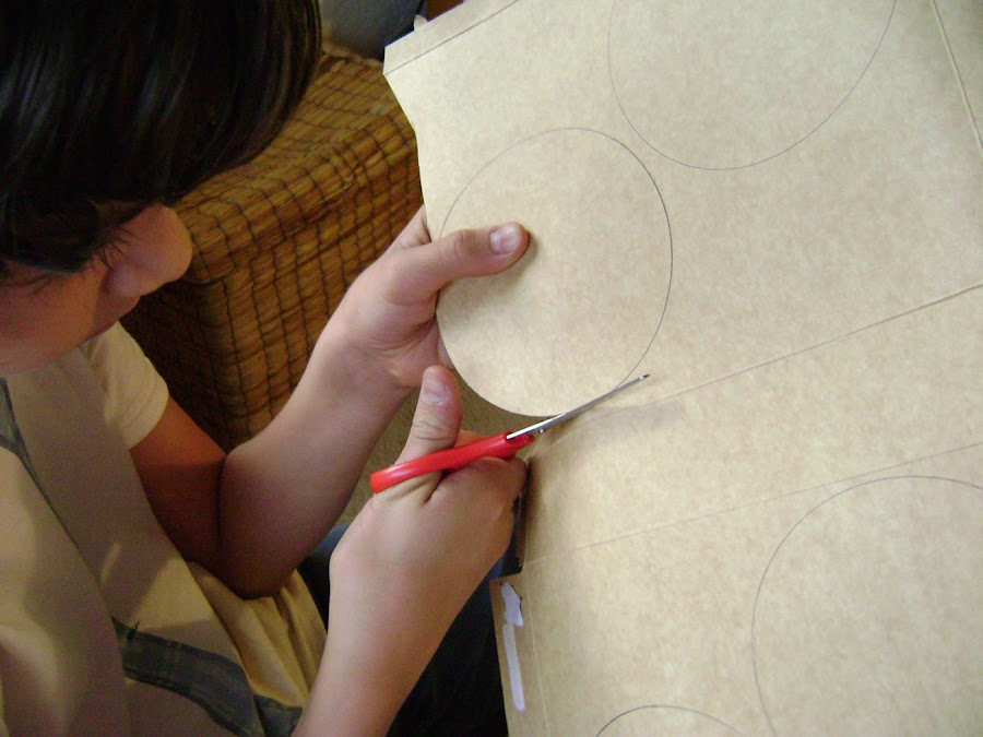 Primero en el cartón de cereal pintar 4 círculos con uno de los cds y luego se cortan.