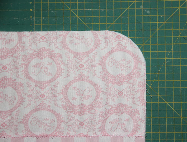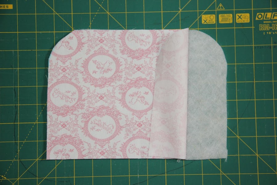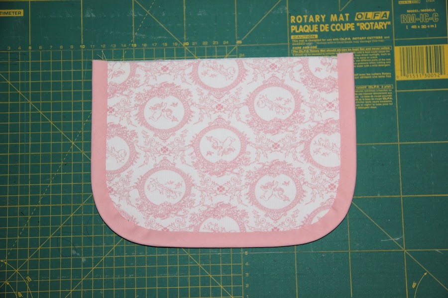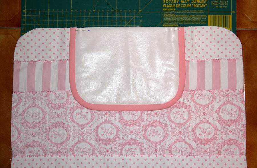 Para hacer la solapa, coger el rectándulo de 18x25, colocar la guata y pegar y después colocar la toalla plastificada.