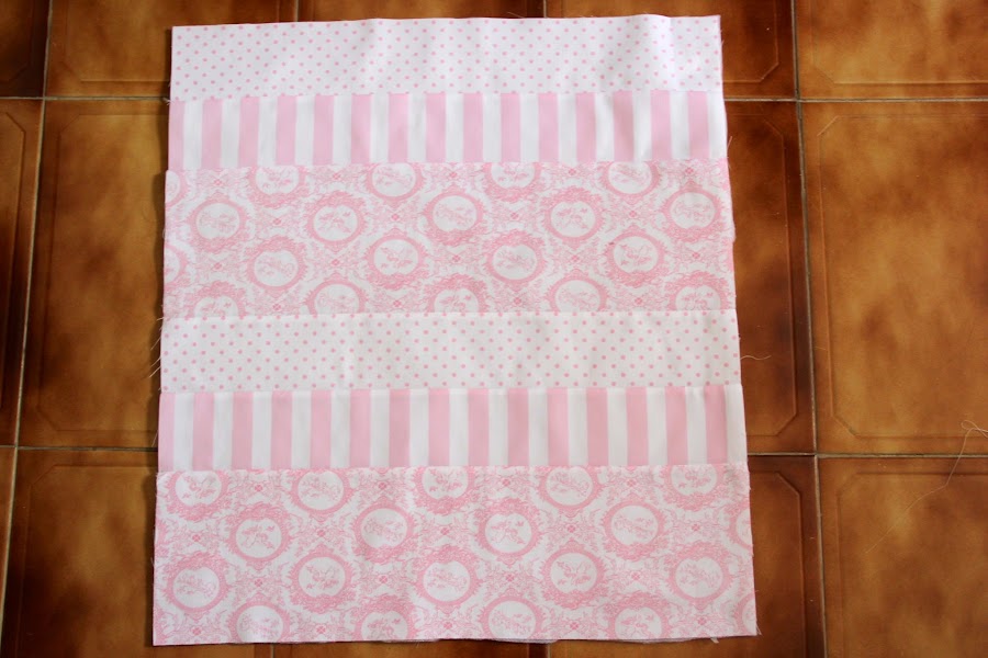 Sewing the strips of 50 cm alternating patterns, as shown in the picture