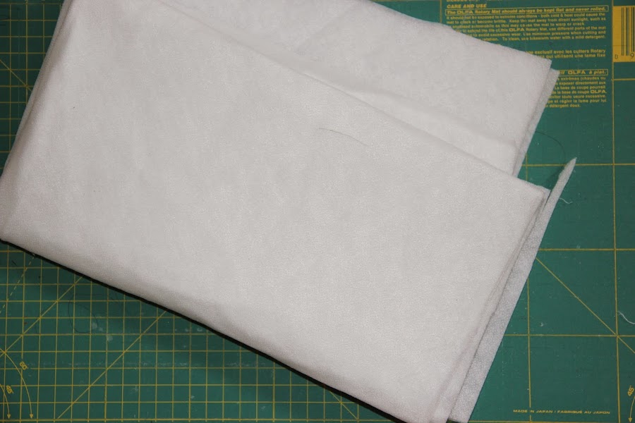Measure the length and cut the same measure of batting and plastic towel fabric