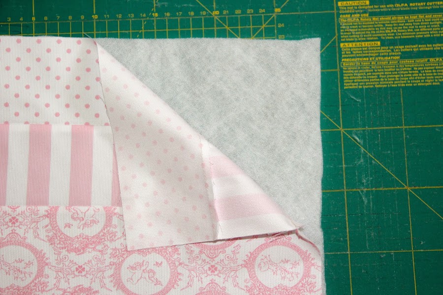 Colocar la guata por el revés del las telas y acolchar o hacer puntadas decorativas sobre las costuras de unión de las telas para fijar bien la guata