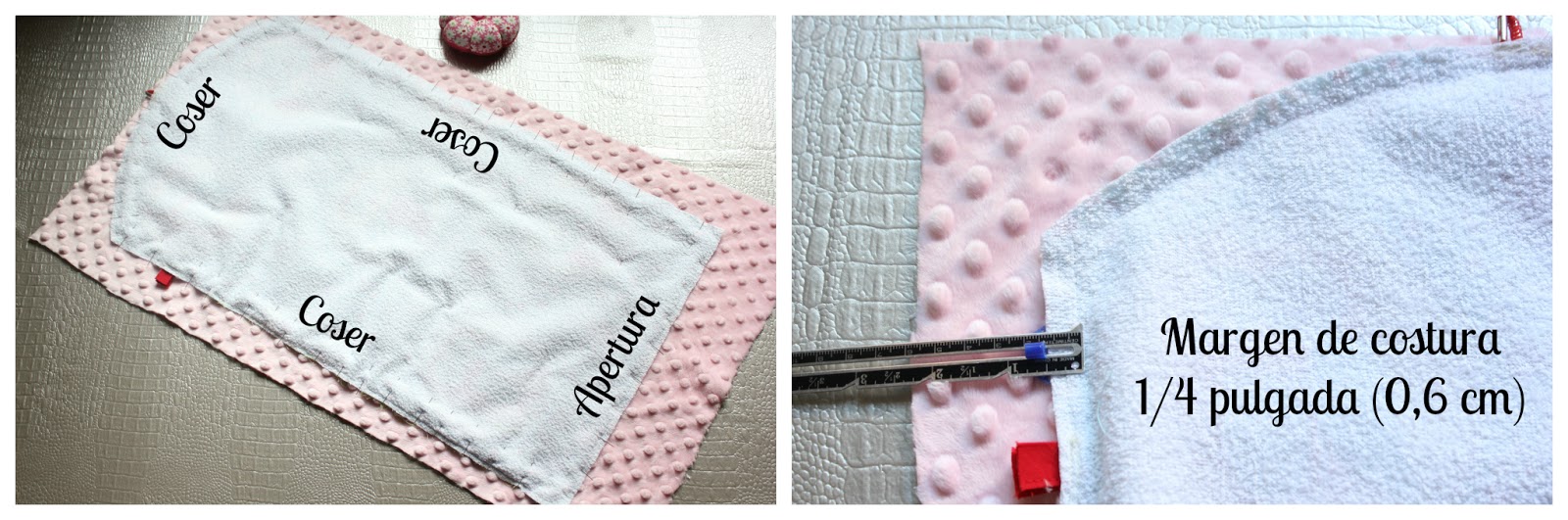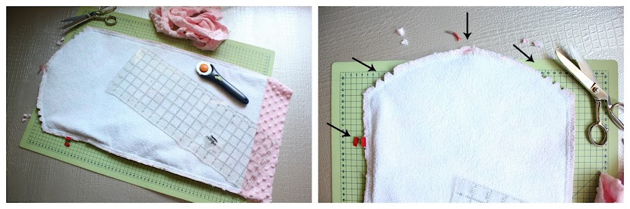 ? Cortamos la tela minky que sobra en los laterales y en la parte superior.