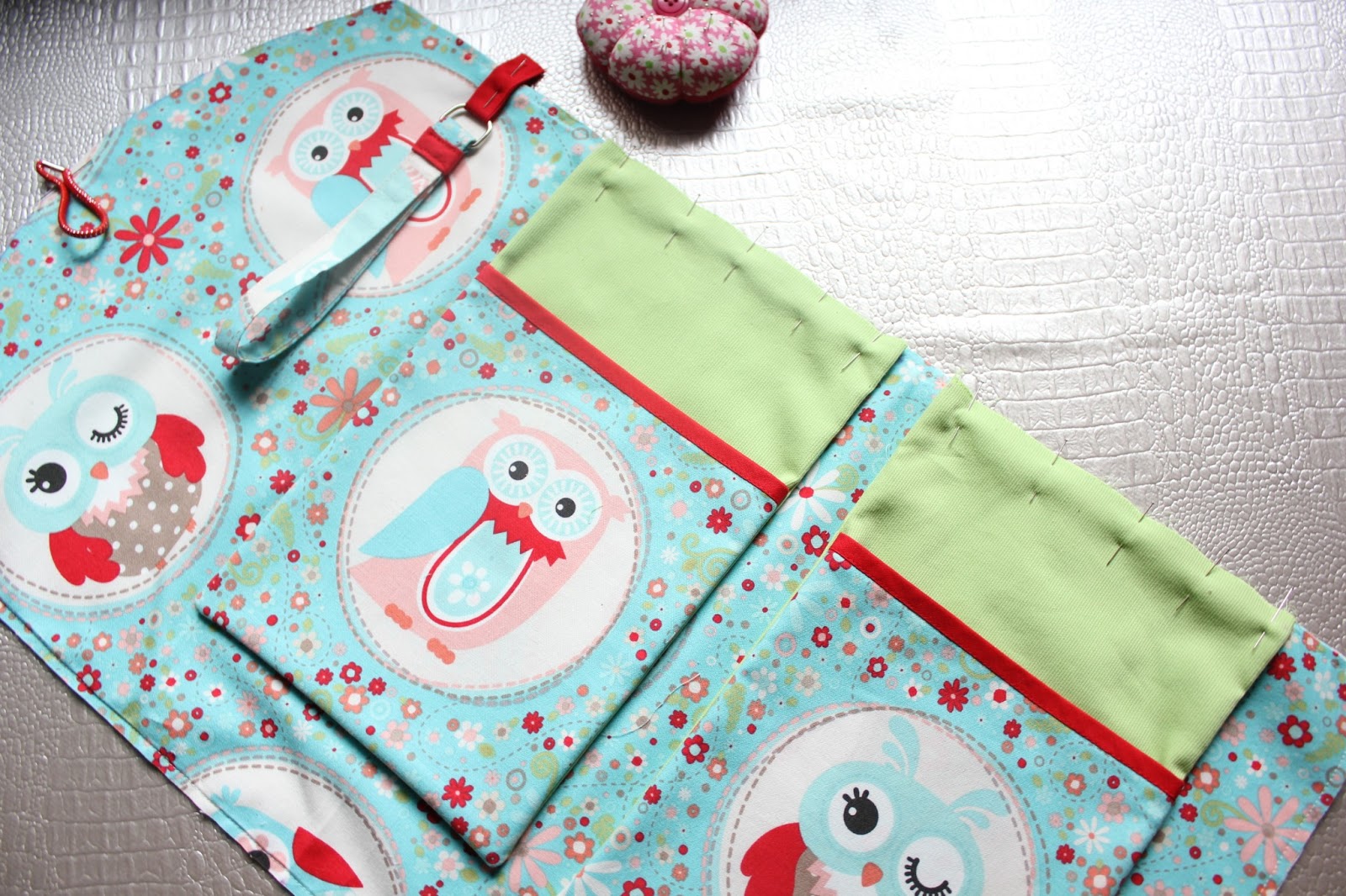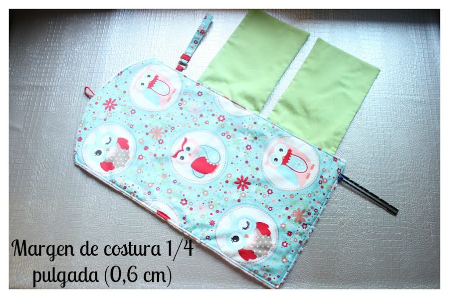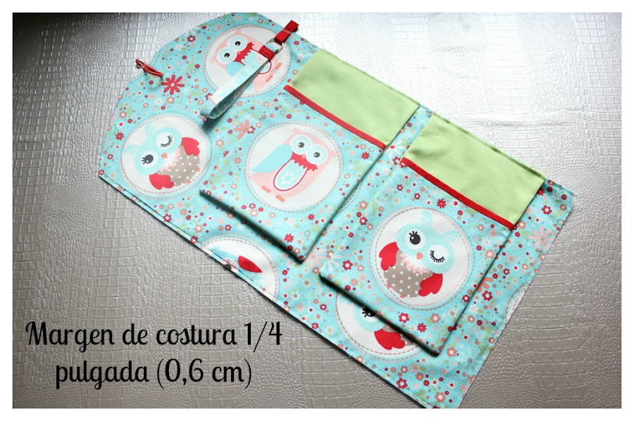 ? Con un margen de costura de 1/4 pulgada (0,6 pulgada), cosemos los bolsillos, la asa y la goma al cambiador.
