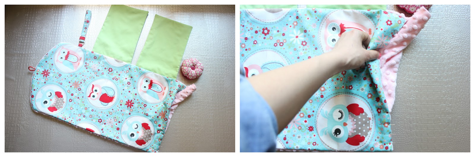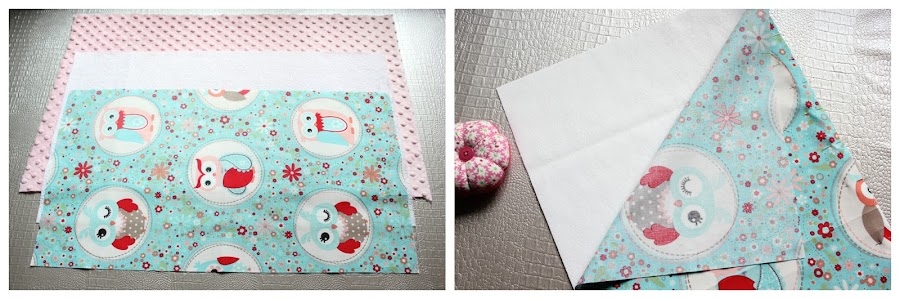 ? Enfrentamos la tela de algodón del cambiador con el derecho de la tela minky y sujetamos con alfileres.