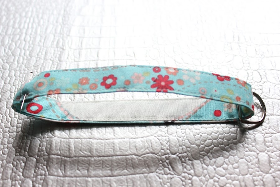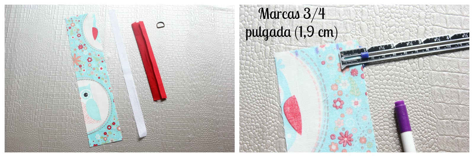 ? Cosemos, cerquita del borde, con un margen de costura de 1/8 pulgada (0,3 cm) a lo largo de ambos lados de la asa.