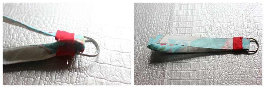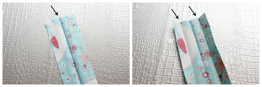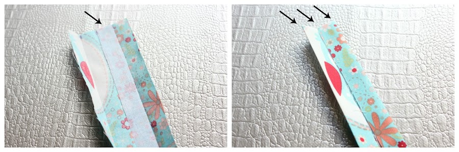 ? Hacemos el bies corto de la misma manera que el bies anterior, pero omitiendo el paso en el que cosemos las extremidades hacia dentro. Este bies es el que sujeta la asa al cambiador.