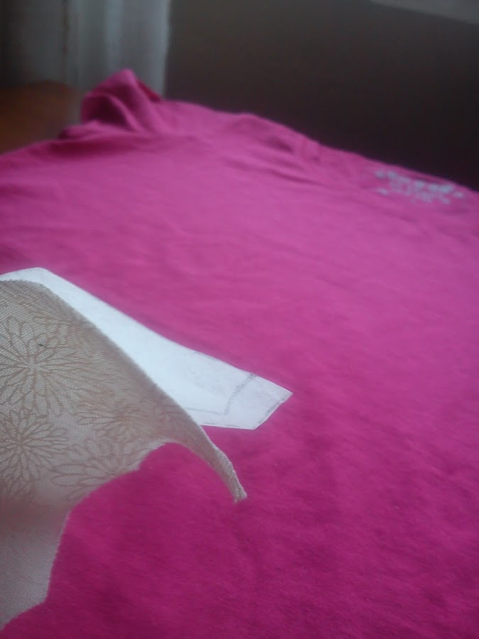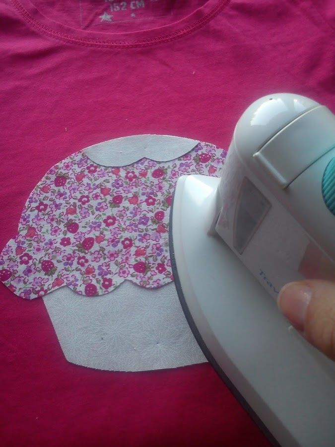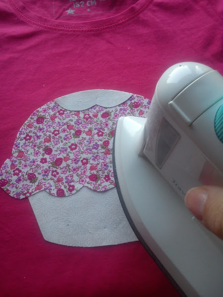 Ahora ya pondremos las piezas sobre la camiseta donde mas nos gusten, mientras no las planchemos las podemos mover .