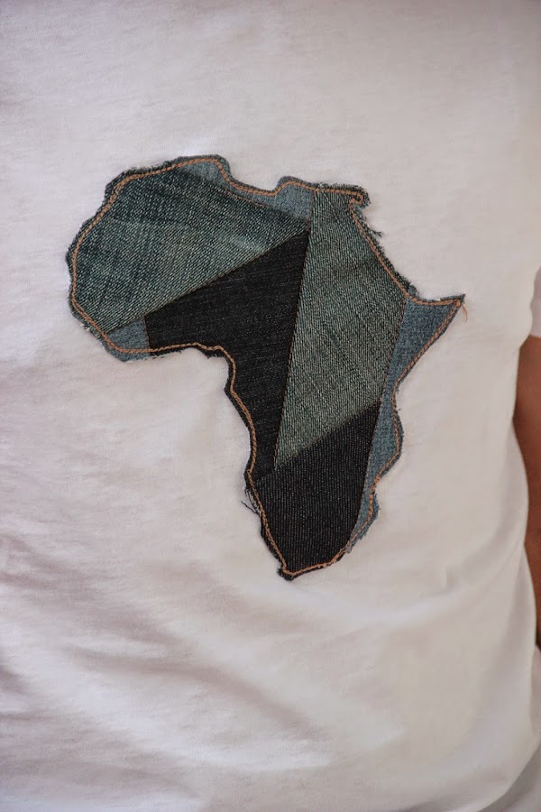 Para hacer el dibujo de África he utilizado retales de diferentes pantalones vaqueros viejos que tenía por casa (y que nunca tiro). He utilizado la técnica Crazy de patchwork para unir unas telas a otras y la verdad, el resultado es muy juvenil.