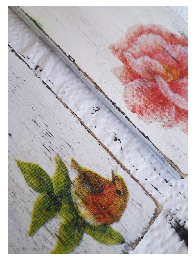 No tengáis prisa y dejarla secar. El resto lo dejo a vuestra imaginación... podéis darle a todo una fina pátina de betún de judea, tinte... adornar con flores secas o de tela, perlas, lazos, puntillas...