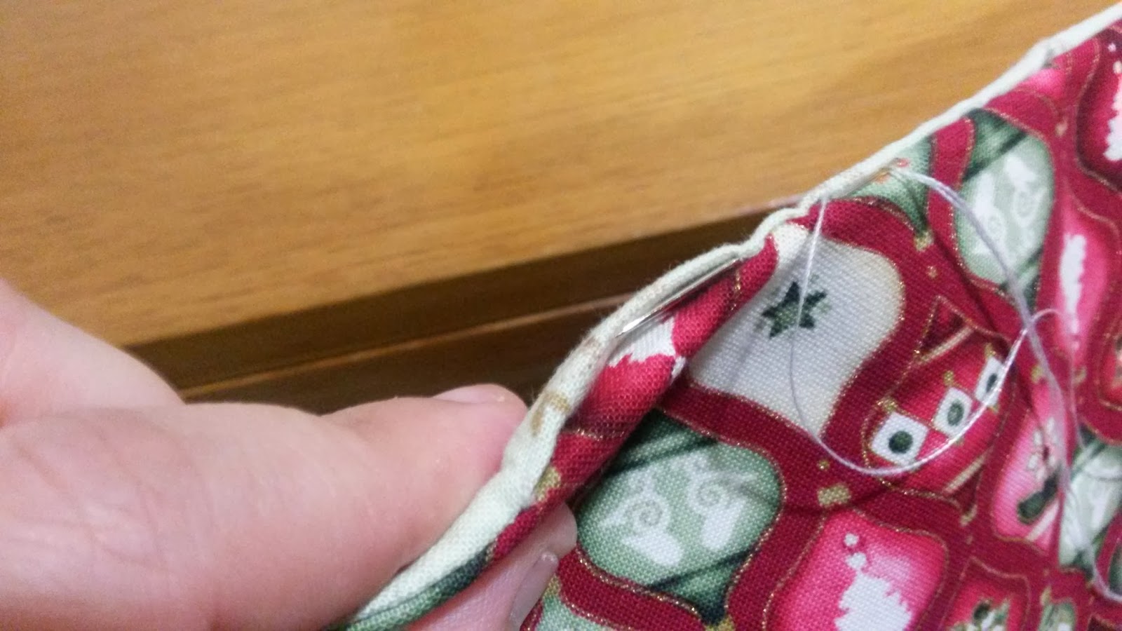 Damos la vuelta sacamos bien las puntas de las esquinas y cosemos con puntada invisible la apertura.