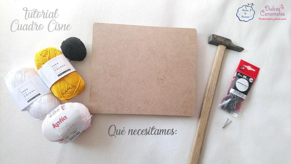 Lana de colores. Nosotras al ser un cisne, hemos usado el color blanco de Must Have de Yarn and Colors (nº1) para el cuerpo. El color negro (nº100) para el ojo y las pestañas y el detalle del pico que caracteriza a los cisne, como es poca cantidad, con un mini ovillo es suficiente; y el color dorado (nº 15) para el pico y la corona.
