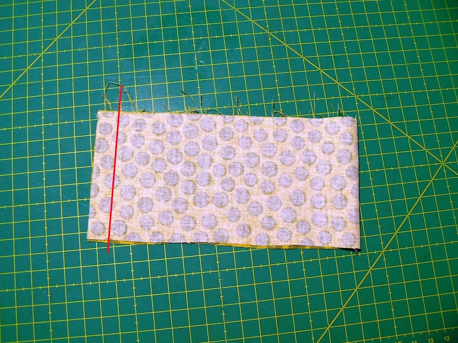 Ahora enfrentamos los lados cortos y los cosemos derecho con derecho.