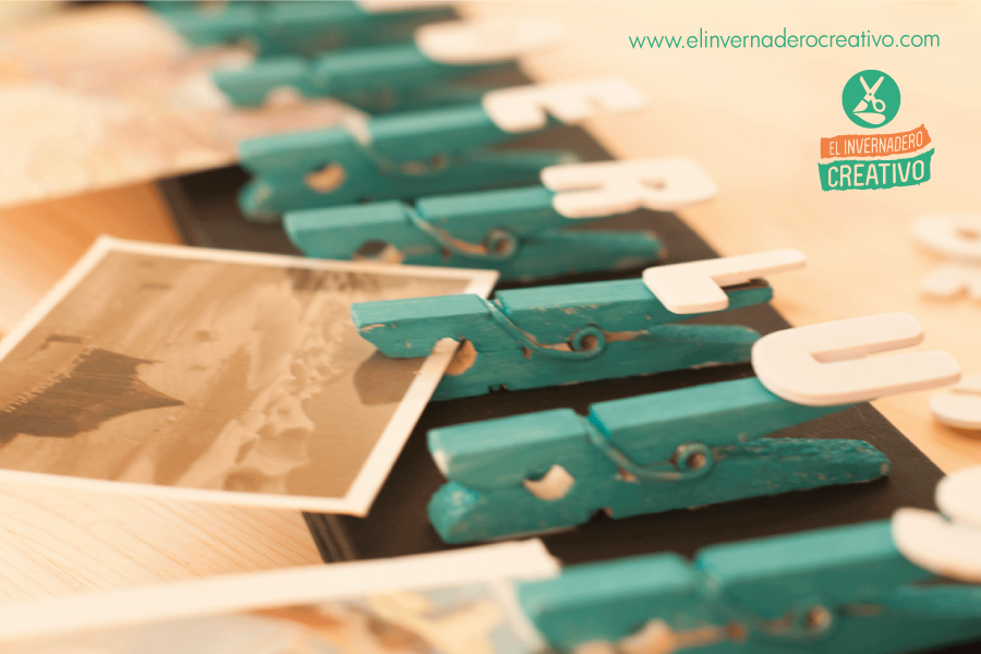 Y así de fácil y rápido hemos terminado. Coloca las letras en su sitio y ya tienes listo tu colgador. Para colgarlo puedes poner un par de hembrillas.