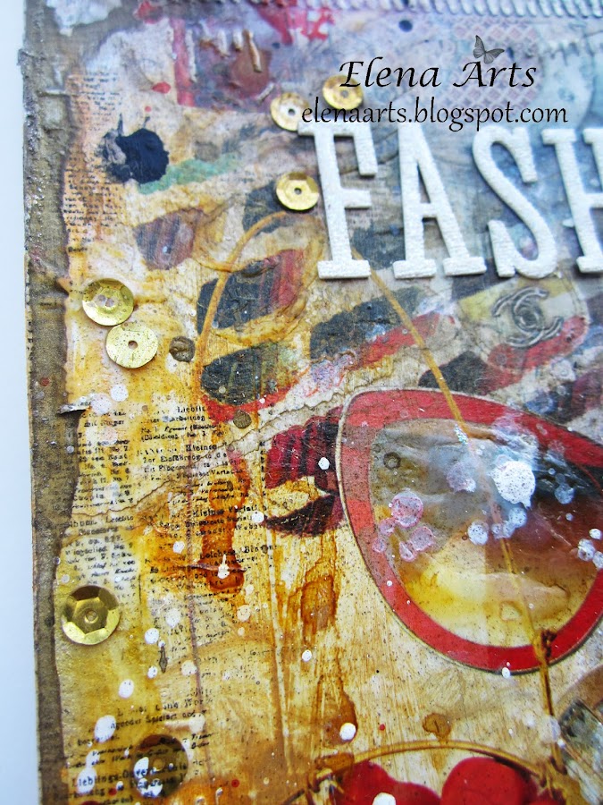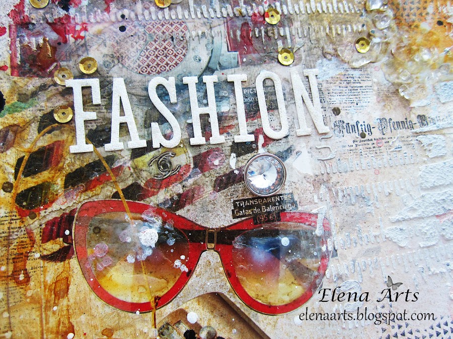 And finally I finished my work by placing the word "fashion" and covered it with the transparent glitter. For a final touch, I put a glass button. And that is all!!