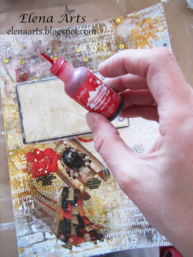 Un poco de acentos rojos salpicando el trabajo con la tinta alcohólica y negra.