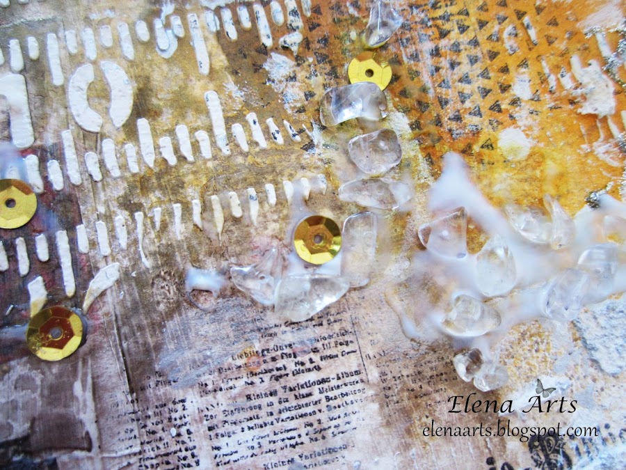 I also added some transparent stones to create more texture in the background. And I glued some gold-colored sequins.