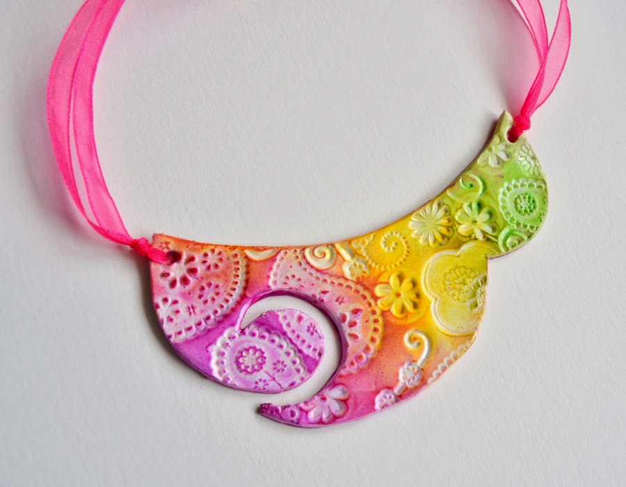 Por eso, ya me estoy preparando para dejar atrás medias y pantalones largos y empezar a lucir vestiditos y colores alegres. Ya sólo me apetece crear piezas coloridas y primaverales, como mi colgante de tintas o el de libélula que viste en entradas anteriores.