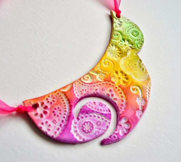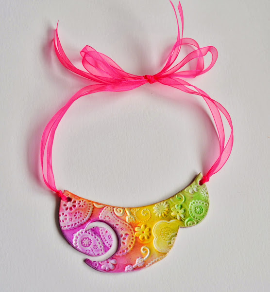 Por eso, ya me estoy preparando para dejar atrás medias y pantalones largos y empezar a lucir vestiditos y colores alegres. Ya sólo me apetece crear piezas coloridas y primaverales, como mi colgante de tintas o el de libélula que viste en entradas anteriores.