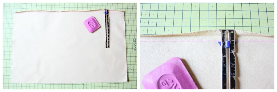 Truco: para hacer un dobladillo perfecto, vamos a dibujar una línea paralela y a 1/2 pulgada (1,3 cm) de distancia del borde superior. De esta manera solo tendremos que planchar el dobladillo hasta nuestra marca.