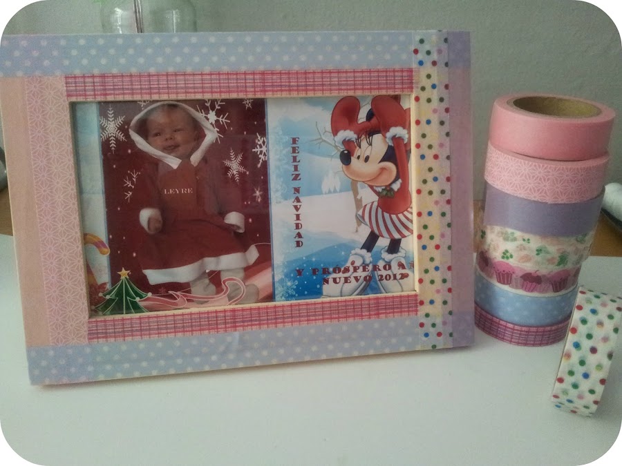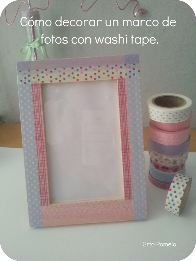Esta maualidad es muy sencilla. Sólo tenemos que ir forrando el marco con el washi tape, a nuestro gusto y combinando colores y estampados.